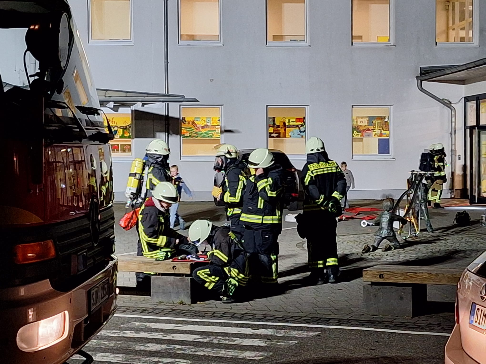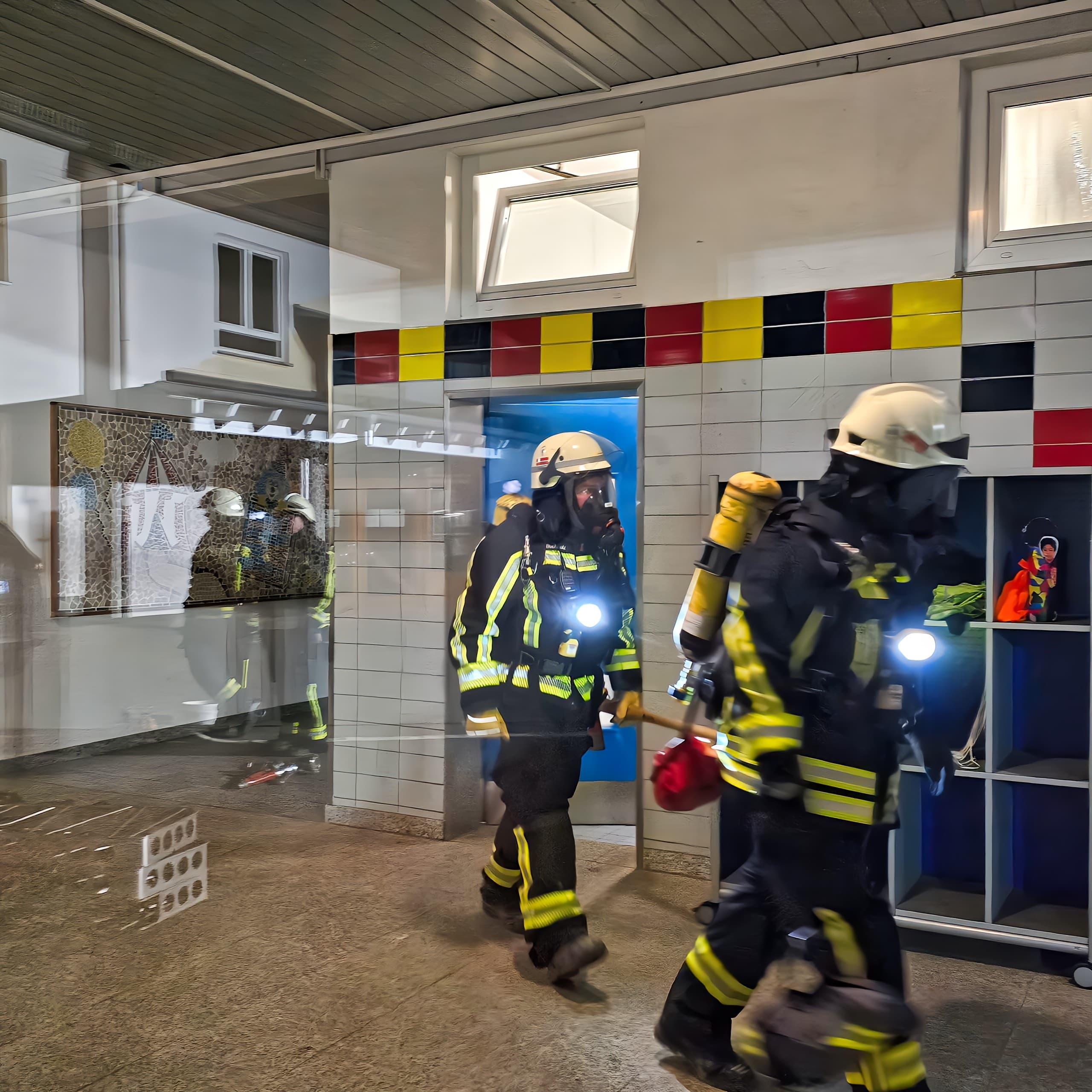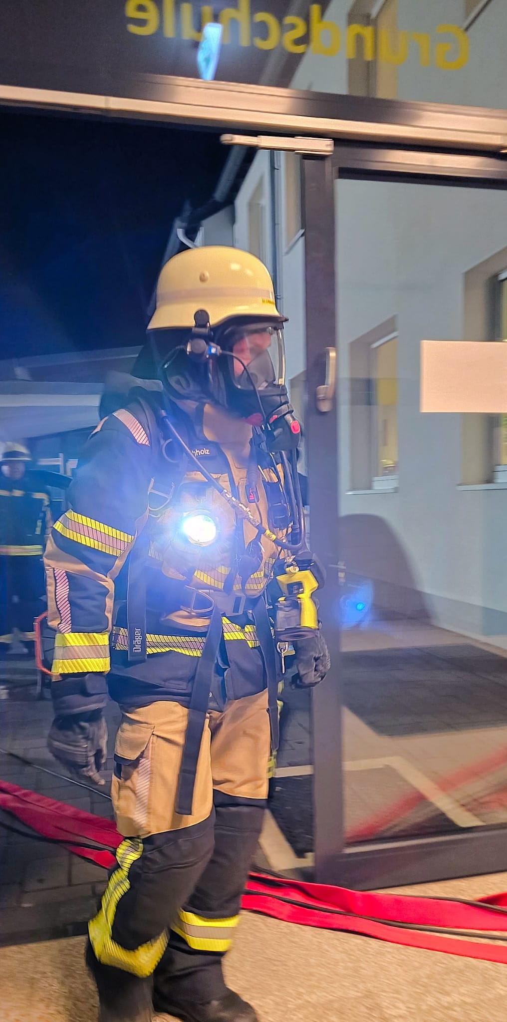 Umgehend gingen mehrere Atemschutztrupps zur Menschenrettung und Brandbekämpfung in das Schulgebäude vor. 👨🏼🚒